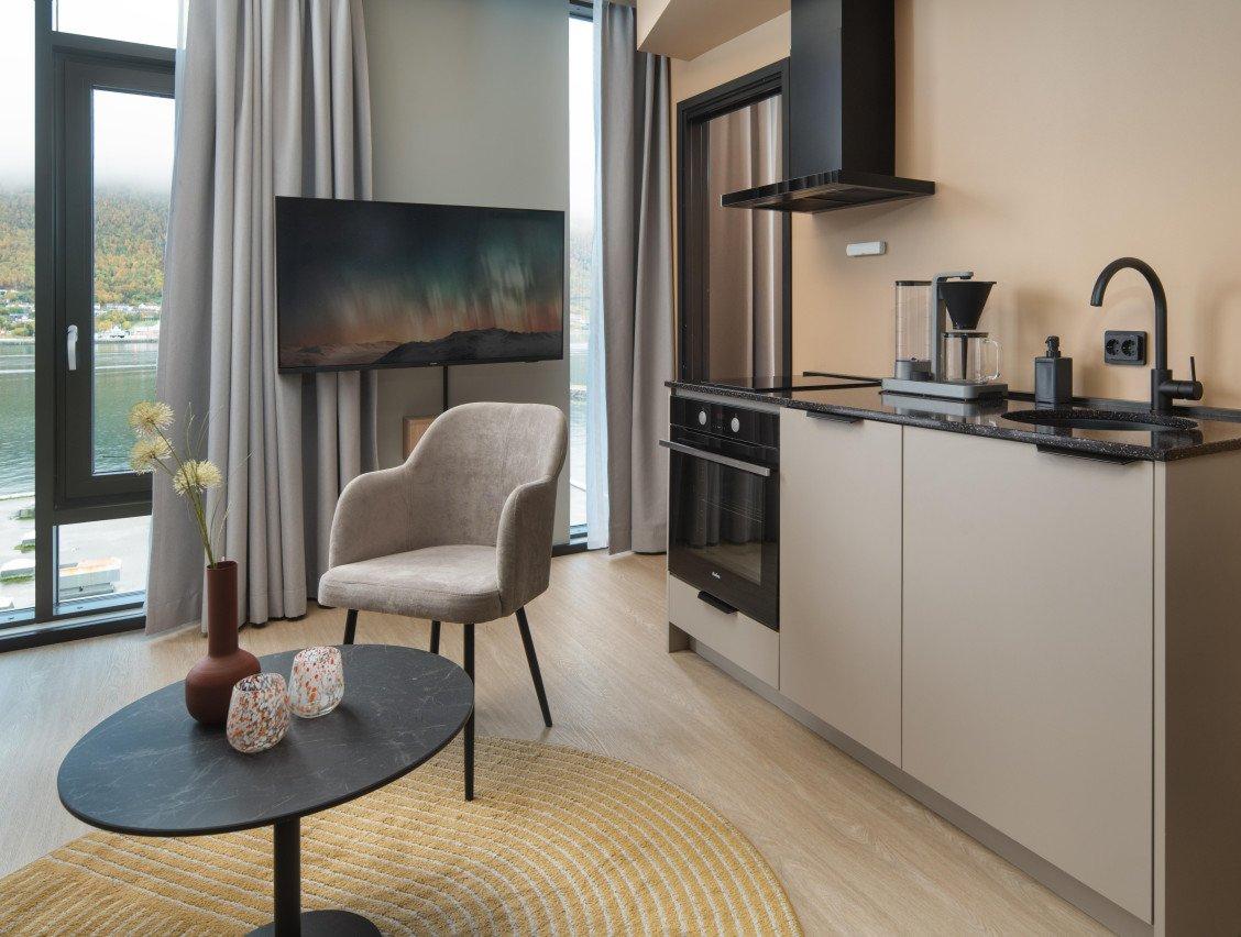 Skaret by Vander is a modern aparthotel located right by the waterfront in the heart of Tromsø. Opened in 2023, it offers 147 newly renovated apartments combining the comfort of home with the convenience of hotel living. With stylish interiors, practical amenities, and an unbeatable location near the city’s main attractions, Skaret by Vander is the perfect choice for both short and long stays in Tromsø.
