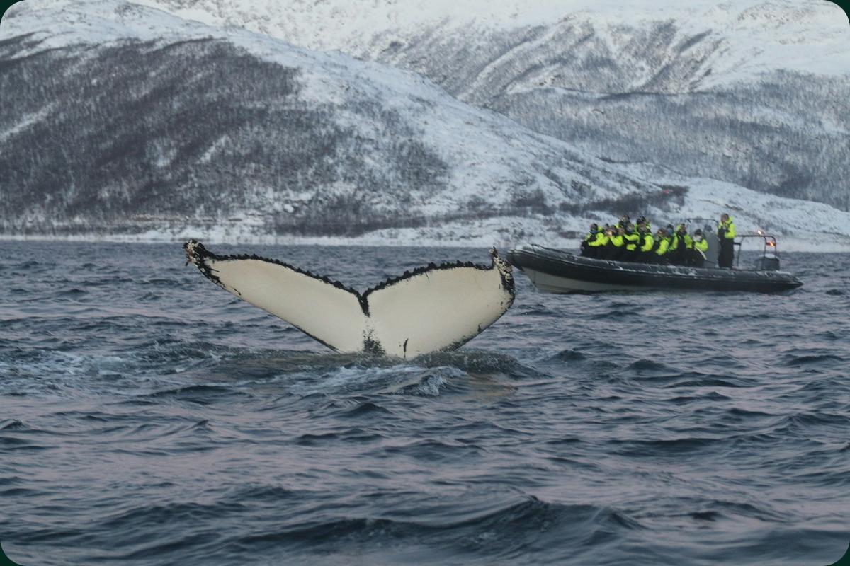 Embark on a thrilling Whale Safari in Tromsø and witness majestic humpback and orca whales up close in their natural Arctic habitat. A breathtaking experience surrounded by snowy mountains and icy fjords!