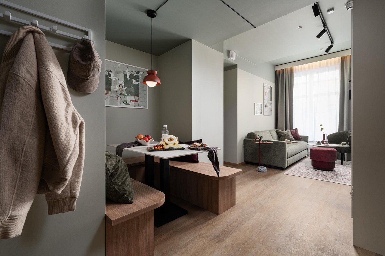 Bo komfortabelt i moderne leiligheter i en bygning med spennende arkitektur, kun 15 minutters gangavstand fra sentrum. Et utmerket valg for personer som reiser alene, enten på ferie elle...