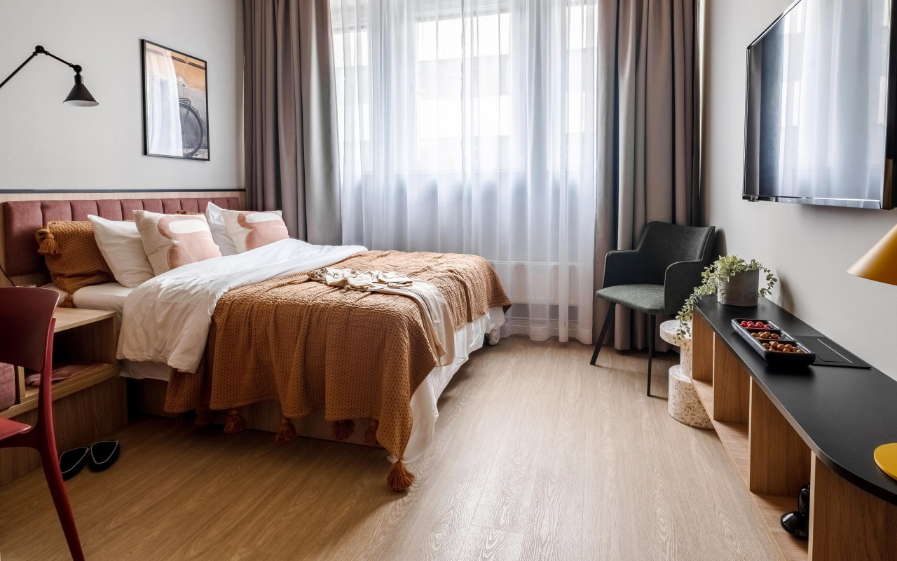 Our brand-new aparthotel is located just a short stroll from the city center and all famous sights. You will find great restaurants, cafés, museums, grocery stores all close by.