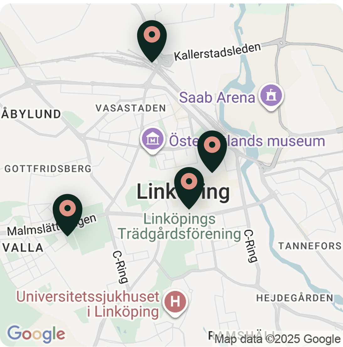 Våre 186 leiligheter ligger i Linköpings mest attraktive og sentrale områder – alle med enkel tilgang til kollektivtransport, dagligvarebutikker, kafeer og restauranter.