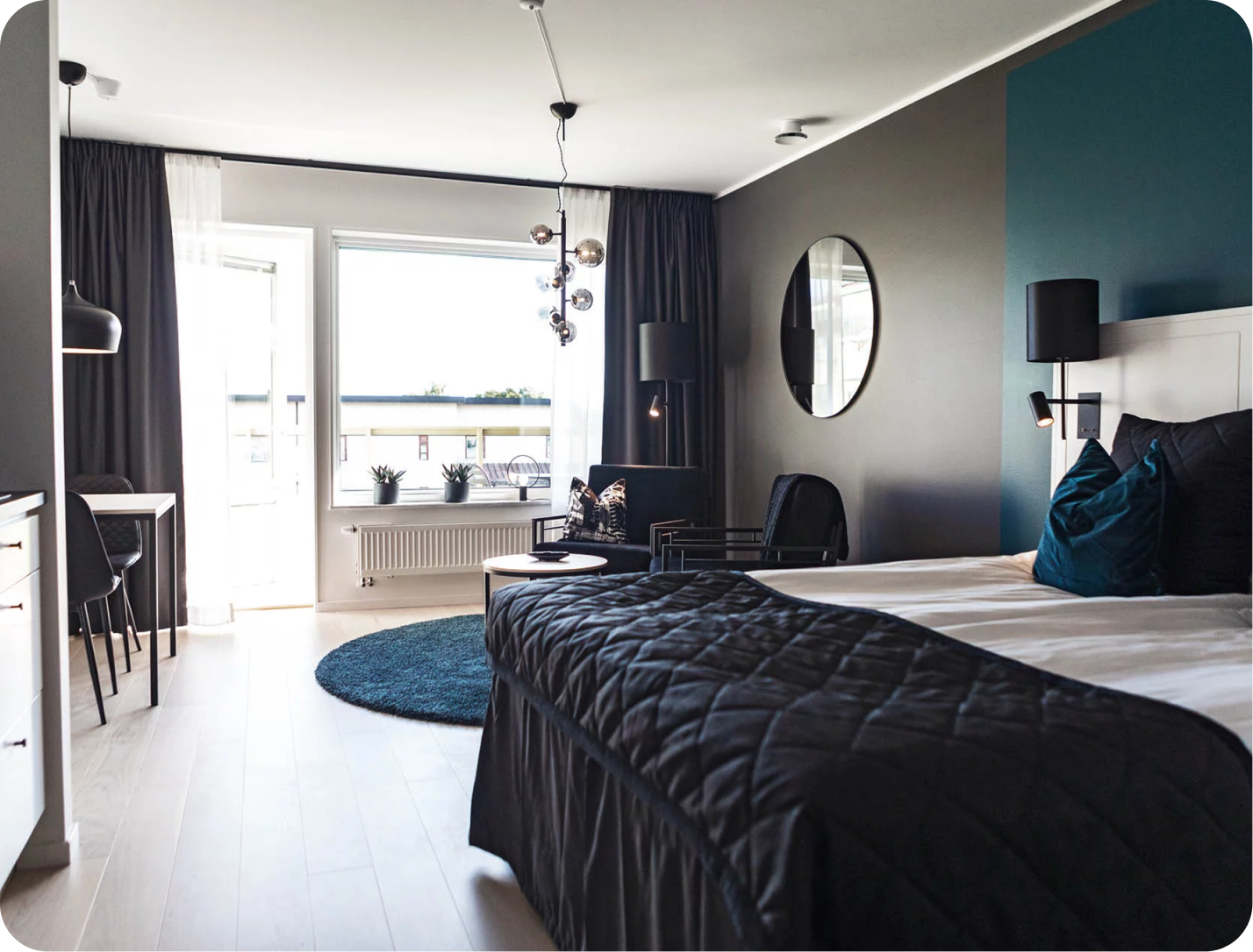 For an even higher standard, and a unique location we have apartments by the small square Hospitalstorget. These 12 apartments have contemporary, sophisticated interiors, fully tiled bathroom with washing machine and clothes dryer, and high-quality materials. We invite you to experience our Executive apartments.