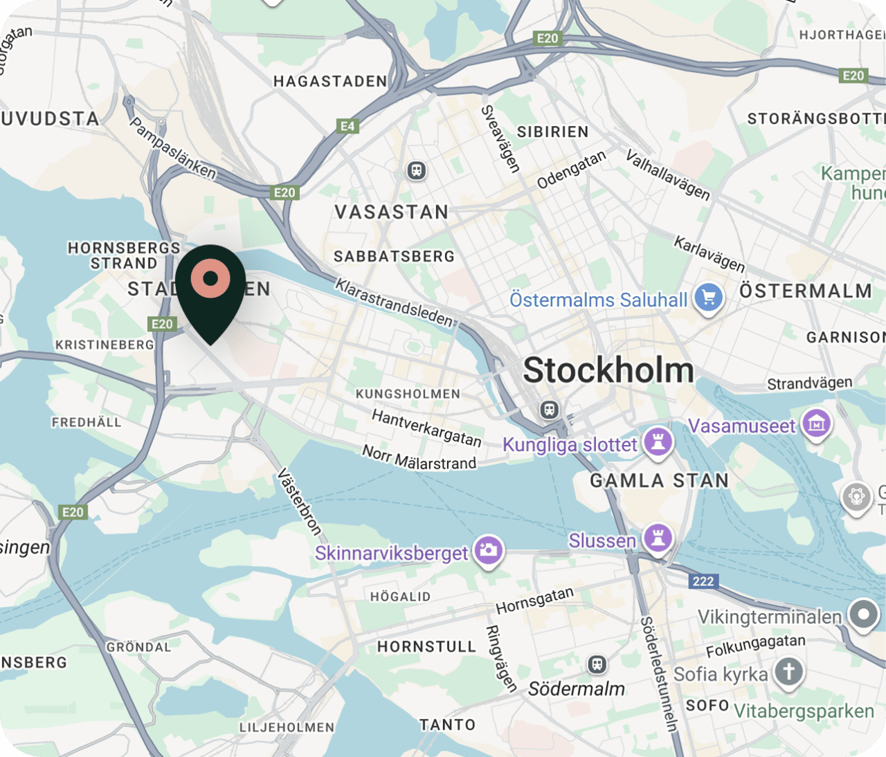 Vander Kungsholmen har en perfekt beliggenhet i hjertet av Kungsholmen i Stockholm. Kun en kort spasertur fra både den grønne og den blå T-banens linje.