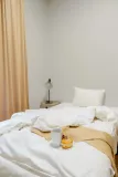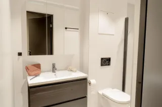 Våra standardlägenheter har ett separat badrum och ett fullt utrustat kök. Varje lägenhet visar upp en konsekvent, modern skandinavisk design, vilket garanterar en stilfull och bekväm vistelse.