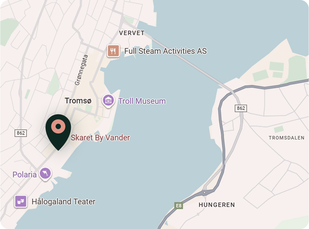 Skaret by Vander har ett perfekt läge i hjärtat av Tromsø. Bara en kort promenad från stadens främsta sevärdheter, restauranger och kajområdet erbjuder våra lägenheter den idealiska utgångspunkten för att uppleva den arktiska huvudstaden.