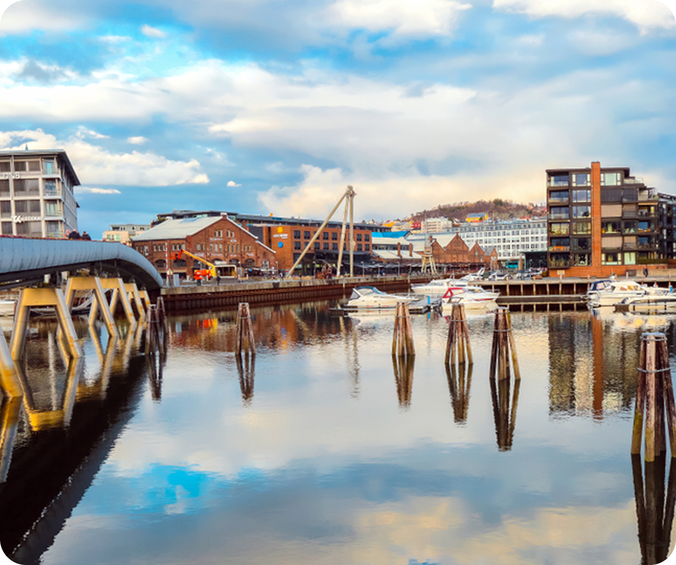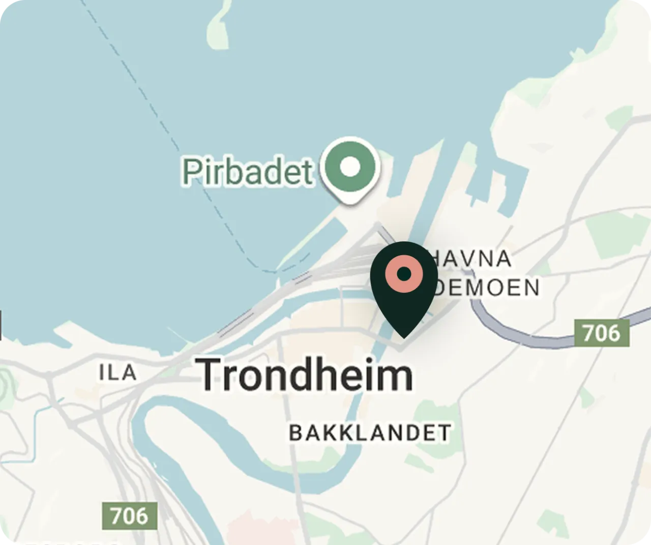 Solsiden är ett levande område vid vattnet i Trondheim, känt för sin livliga atmosfär. En gång i tiden var det ett gammalt varvsområde, men har nu förvandlats till ett trendigt kvarter fyllt med restauranger, caféer, barer och butiker. Kombinationen av historiska industribyggnader och modern arkitektur ger området en unik charm. På sommaren vaknar kajområdet till liv när människor samlas för att äta och umgås utomhus. Vi har turen att ha våra lägenheter här, mitt i hjärtat av denna dynamiska och vackra del av staden.